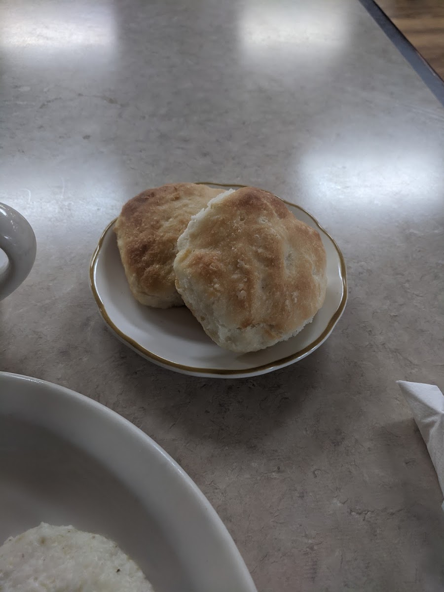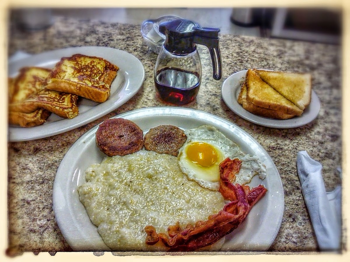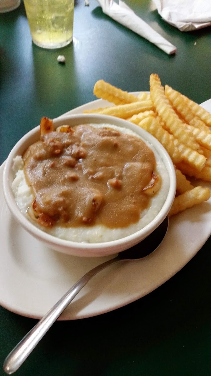 The food here was outstanding. For just a few dollars, you get a basket full of fried mushrooms. Those mushrooms were so good. Excellent value. I would have expected it to cost a lot more with the portion they gave us. I ordered the hamburger steak with onions with seasoned vegetables and mashed potatoes and gravy. Awesome Awesome Awesome!!!! My friend had a fish sandwich and she praised the taste as excellent. She almost couldn't eat it all, and I did have to get a 'to go' box. Fixing to have left overs right now. The service was excellent. Couldn't have asked for better. I cannot wait to go back and have lunch again and I bet the breakfast is just as good. All of you HOG riders, you should stop in Georgetown and have some food here. You'll love it!!!